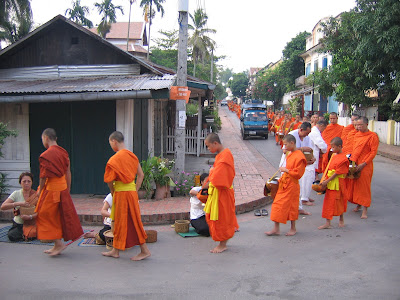 Benoit a malheureusement du nous quitter a Vientiane pour rejoindre le mariage d'un ami a Hanoi. Bien que Vientiane soit la capitale du Laos, c'est une ville tout a fait a l'echelle du pays puisqu'elle compte moins de 300 000 habitants. A des annees lumieres de l'agitation d'une megapole comme Bangkok, Vientiane est une ville tres tranquille, situee au bord du Mekong qui fait ici aussi office de frontiere naturelle avec la Thailande voisine. Les Laotiens n'y sont guere differents de ceux qui vivent en province, il ne faut ici non plus pas trop se fatiguer et il est imperatif d'eviter tout exces de travail si bien qu'absolument tous les magasins et boutiques ferment a 16h30 en semaine, et n'ouvrent que tres rarement le week end. Au terminal de bus, les employes des differentes companies font acte de presence de maniere completement aleatoire, l'un entre 15h et 16h, l'autre apres 17h, le dernier lorsqu'il n'est pas parti aux toilettes ou faire la sieste... Ainsi vont les choses au Laos, mais les gens sont tellement sympathiques et amusants (la plupart du temps en tout cas, meme s'il arrive que les personnes travaillant dans le tourisme soient aussi aimables que des chauffeurs de rickshaw indiens...) qu'il n'est pas du tout difficile de s'y faire, bien au contraire !